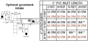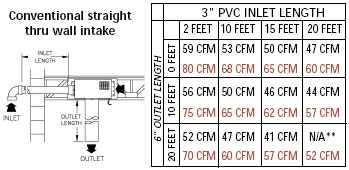 equivalent feet of an installation add the length of the 3" PVC inlet pipe